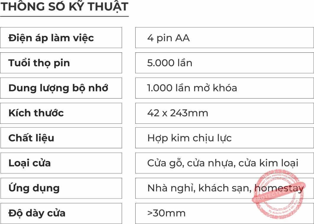 Thông số kỹ thuật của Khóa Khách Sạn OSN-3387