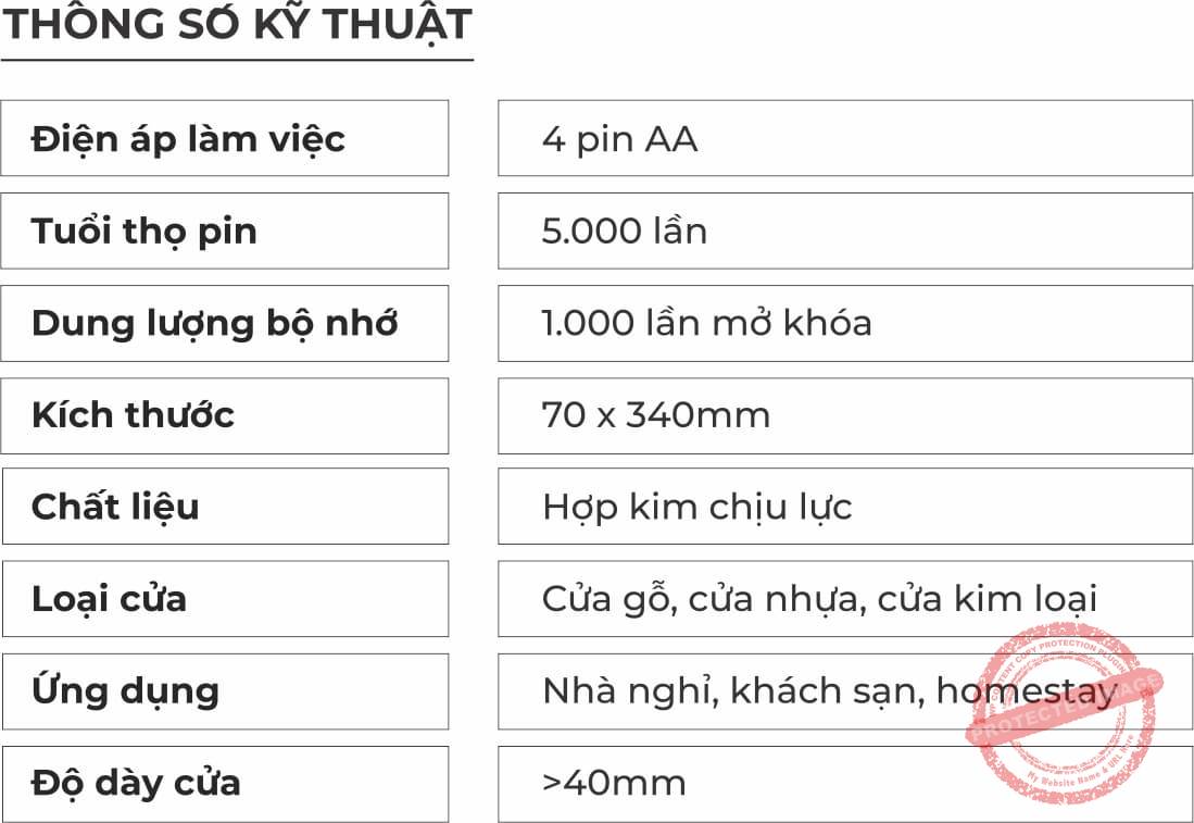 Thông số kỹ thuật của Khóa Thẻ Từ Khóa Sạn OSN-3388